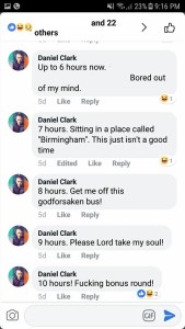 After putting everything up to the act of God himself, all that was left was to show our faces. I got the bus directly from Glasgow to London. Leaving at 11.30pm and arriving at 9am, it was a ten hour journey. I posted updates every hour as comments under a status to keep myself entertained.