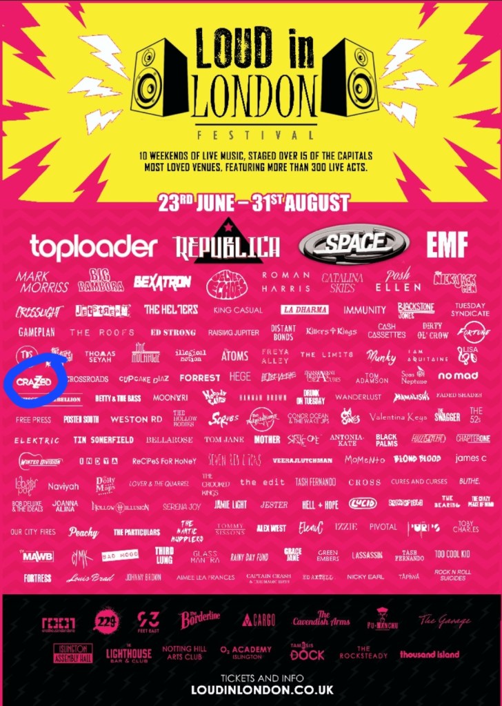 Looking back at my emails from that time, it turns out I turned down the ‘Live In London’ gig due to struggling to find a guitar. I don’t really remember this, but the email chain is there to prove it. The festival dates also happened to clash with the 2018 Edinburgh Festival Fringe, so I was probably too exhausted to fly to London and perform. Funny how much more energy I’ve got now compared to when I was younger! This is the image I found.